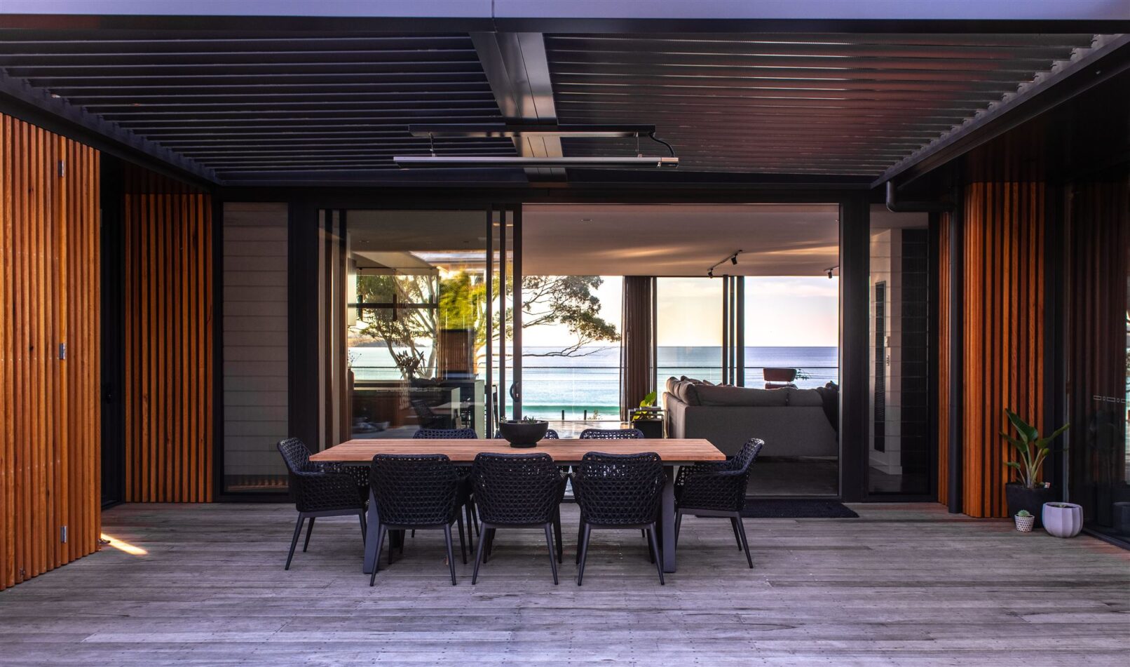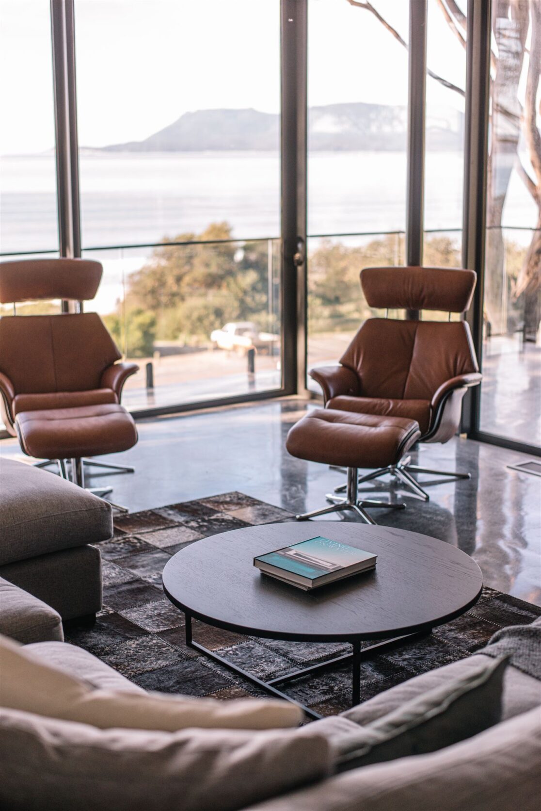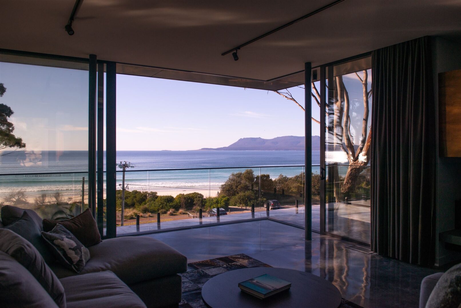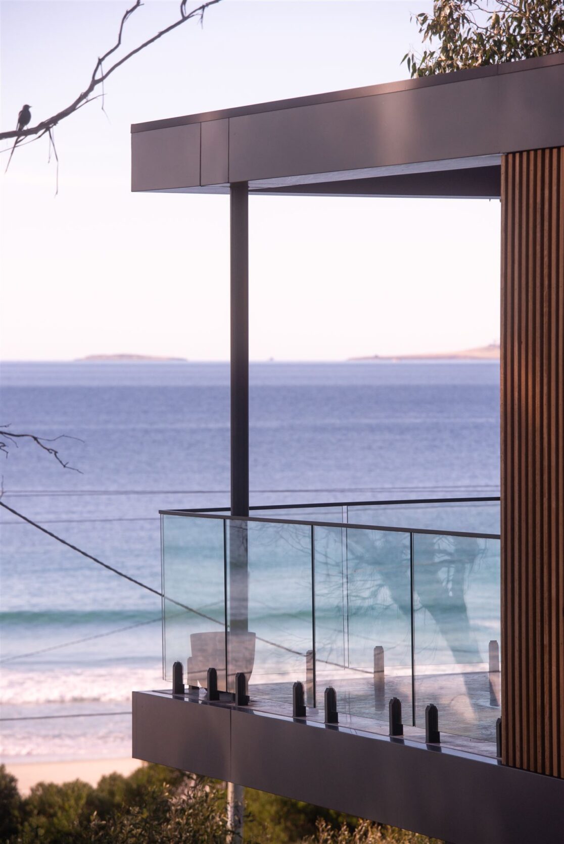 The location for this project is a virtual waterfront block of land, facing onto one of Tasmania’s most beautiful beaches. The views and site are capitalised on by utilising large amounts of glass and steel on the waterside facade. Behind this, a central courtyard provides privacy and protects the occupants from prevailing sea breezes.